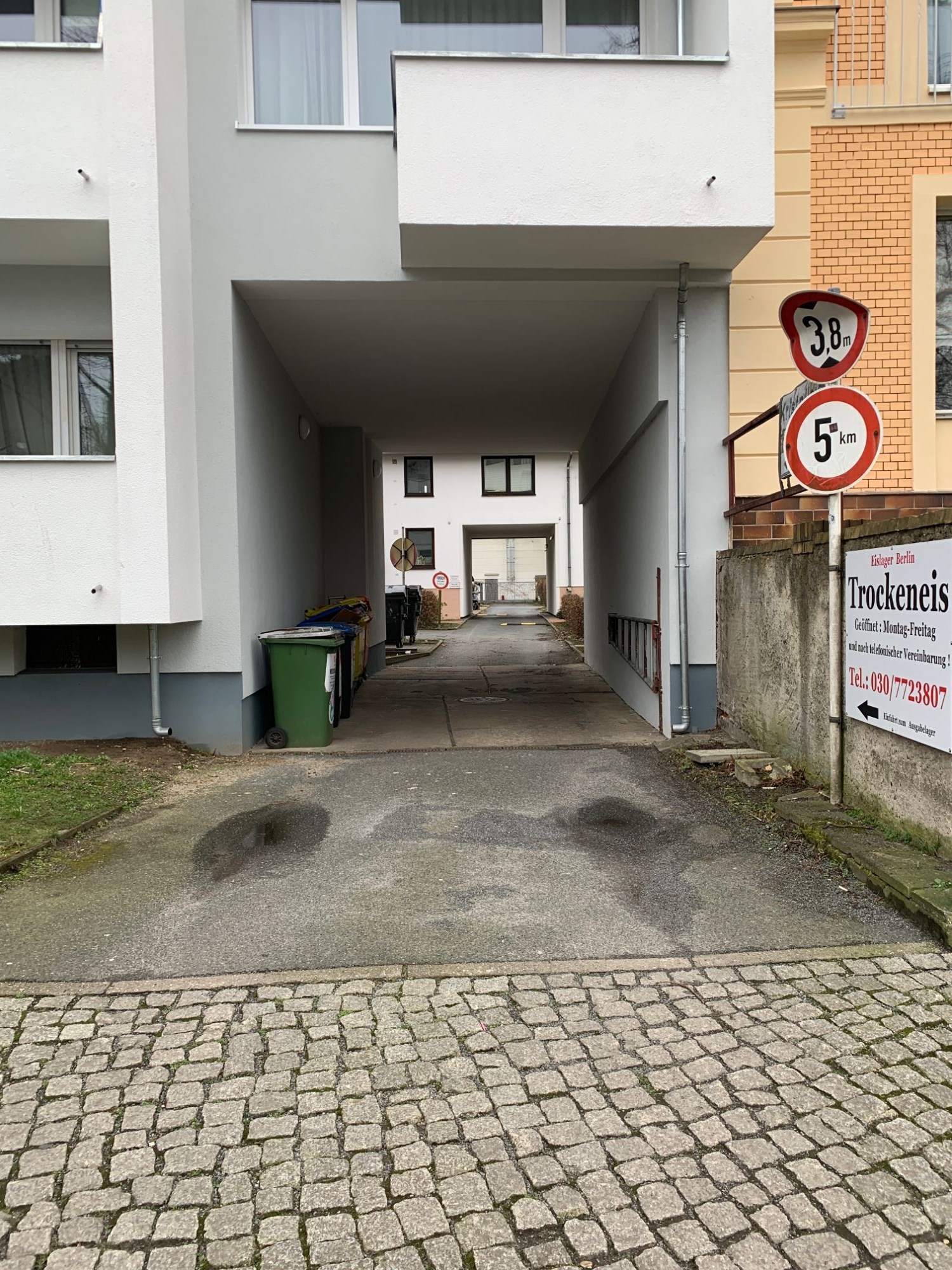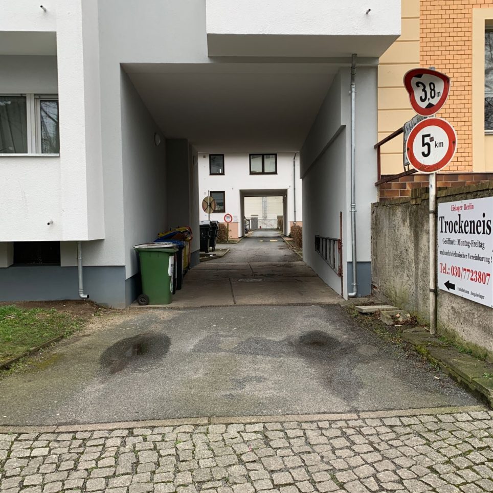 Hier stehen insgesamt sieben befestigte Außenstellplätze zur Verfügung. Die Stellplätze können bequem über eine Toreinfahrt erreicht werden.