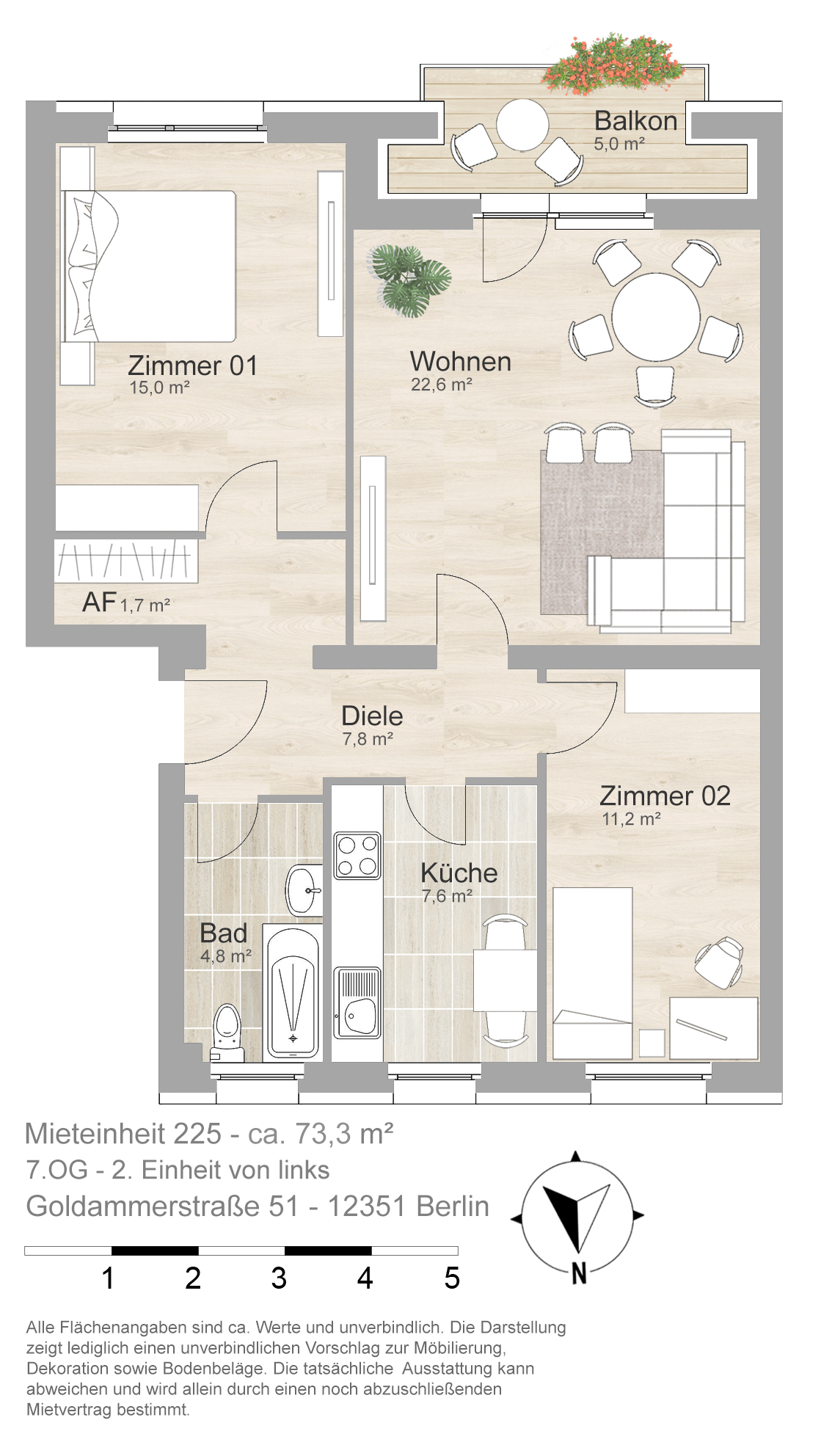 Das Mehrfamilienhaus befindet sich in der Goldammerstraße 29-63/ Ecke Eugen-Bolz-Kehre 1-5 in Berlin Buckow. Das Haus wie auch die Anlage sind von außen und innen sehr gepflegt. Optional können Stellplätze angemietet werden.