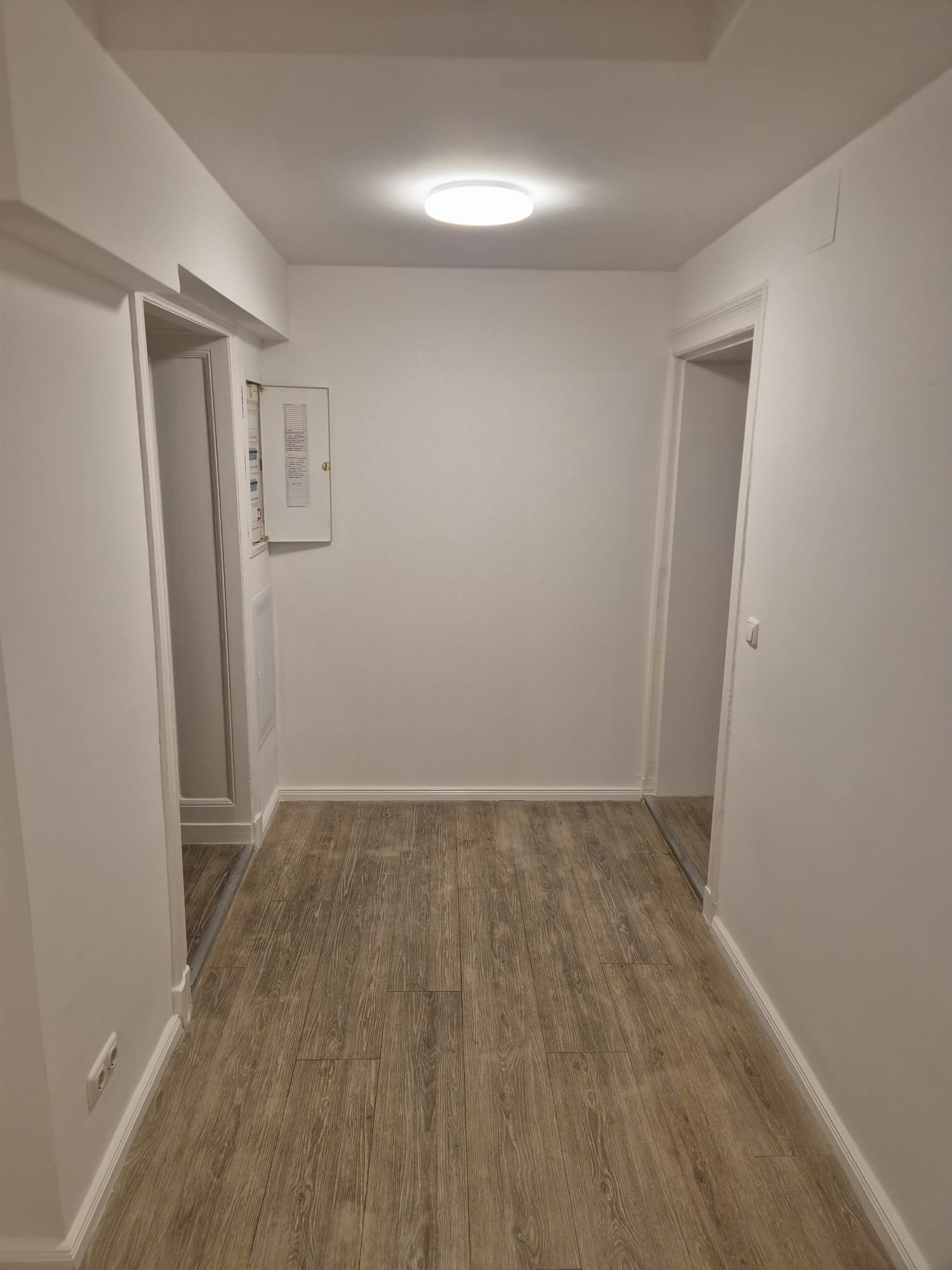 - frisch gespachtelte und weiß gestrichene Wände und Decken