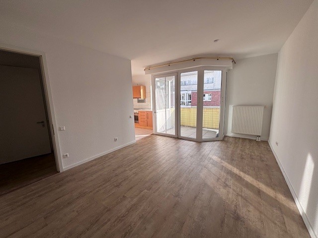 - Geräumiges Wohnzimmer mit offener Kochnische und Balkonzugang
