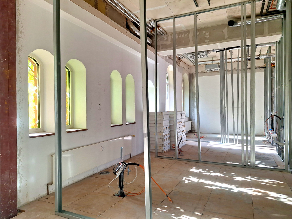 Lagerkapazitäten befinden sich, ebenso wie der Sanitär- und Aufenthaltsbereich, im Untergeschoss.
