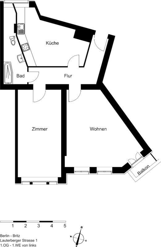 Das Eckhaus Treseburger Ufer 48, 50/Lauterberger Straße 1 aus dem Jahre 1910 liegt direkt am Teltowkanal. Vor einigen Jahren wurden die Dachgeschosse ausgebaut und eine Gas-Zentralheizung eingebaut. Zudem wurde der begrünte Innenhof kürzlich komplett neu gestaltet.