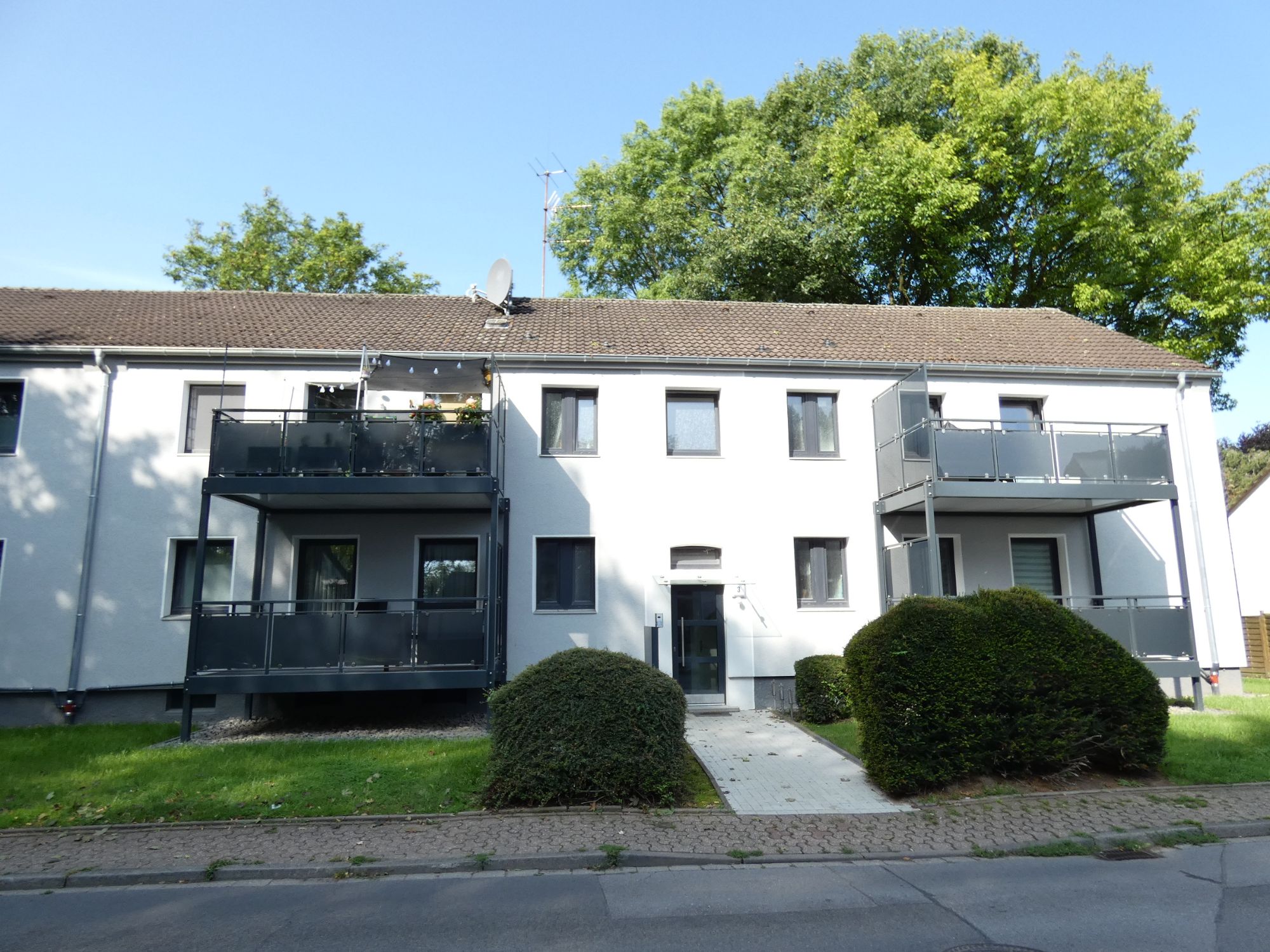 Anbau von Balkonen - Einbau von modernen und energieeinsparenden Wohnungsfenstern - Einbau einer wärmegedämmten Haustüranlage - Anbringen eines Glasvordaches - Aufstellen einer freistehenden Briefkastenanlage - Anstrich der Fassade und des Treppenhauses