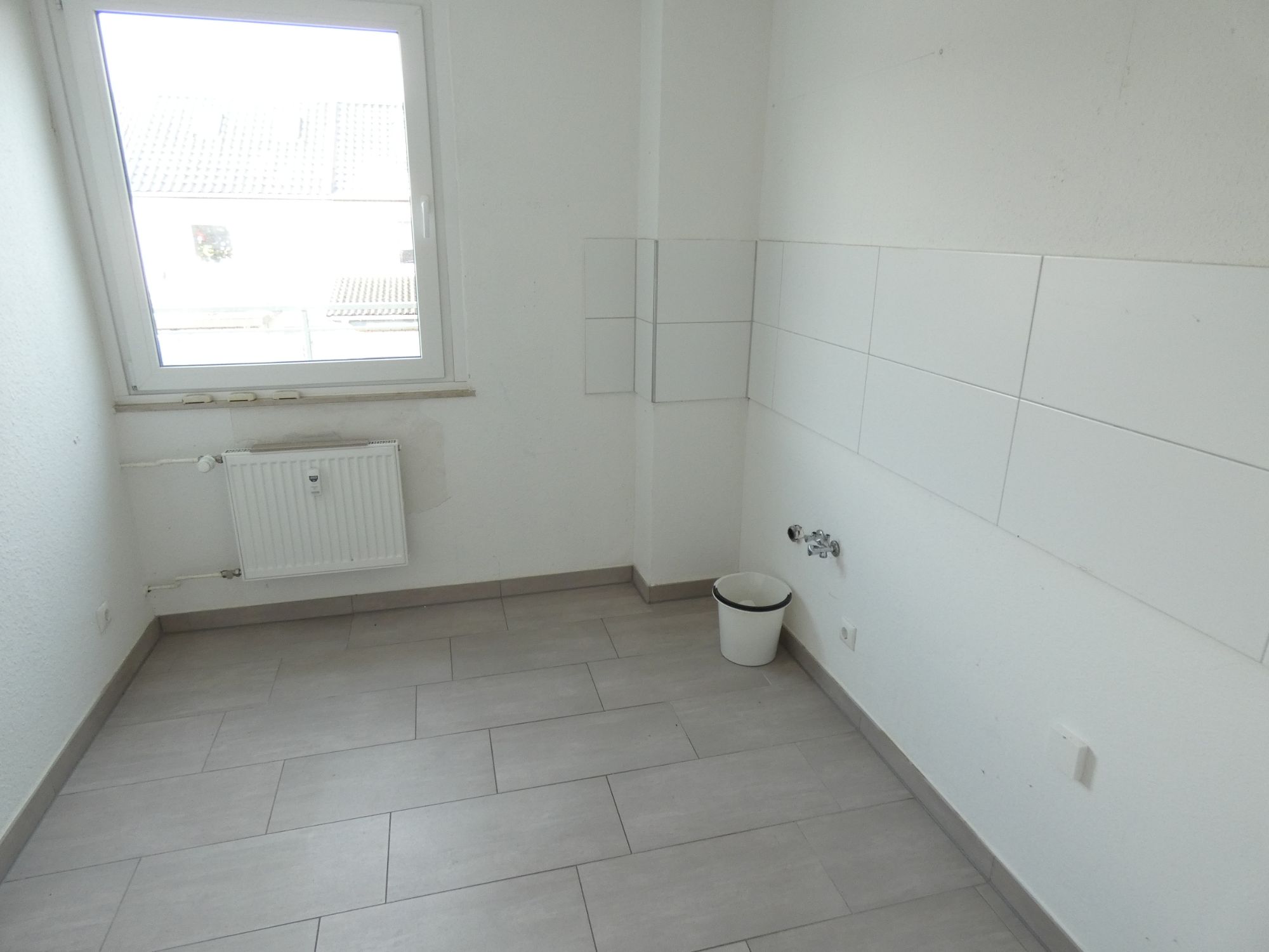 Im Bad und in der Küche wurden helle Fliesen von V & B verlegt.