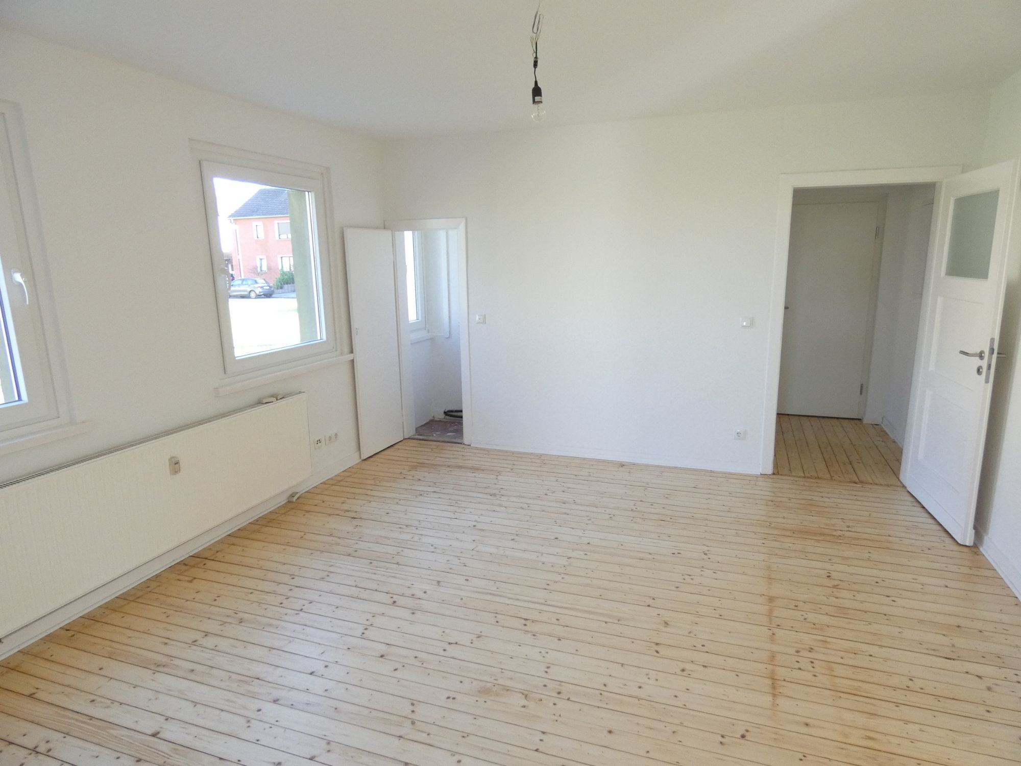 Die Holzdielen wurden in allen Räumen abgeschliffen und versiegelt.