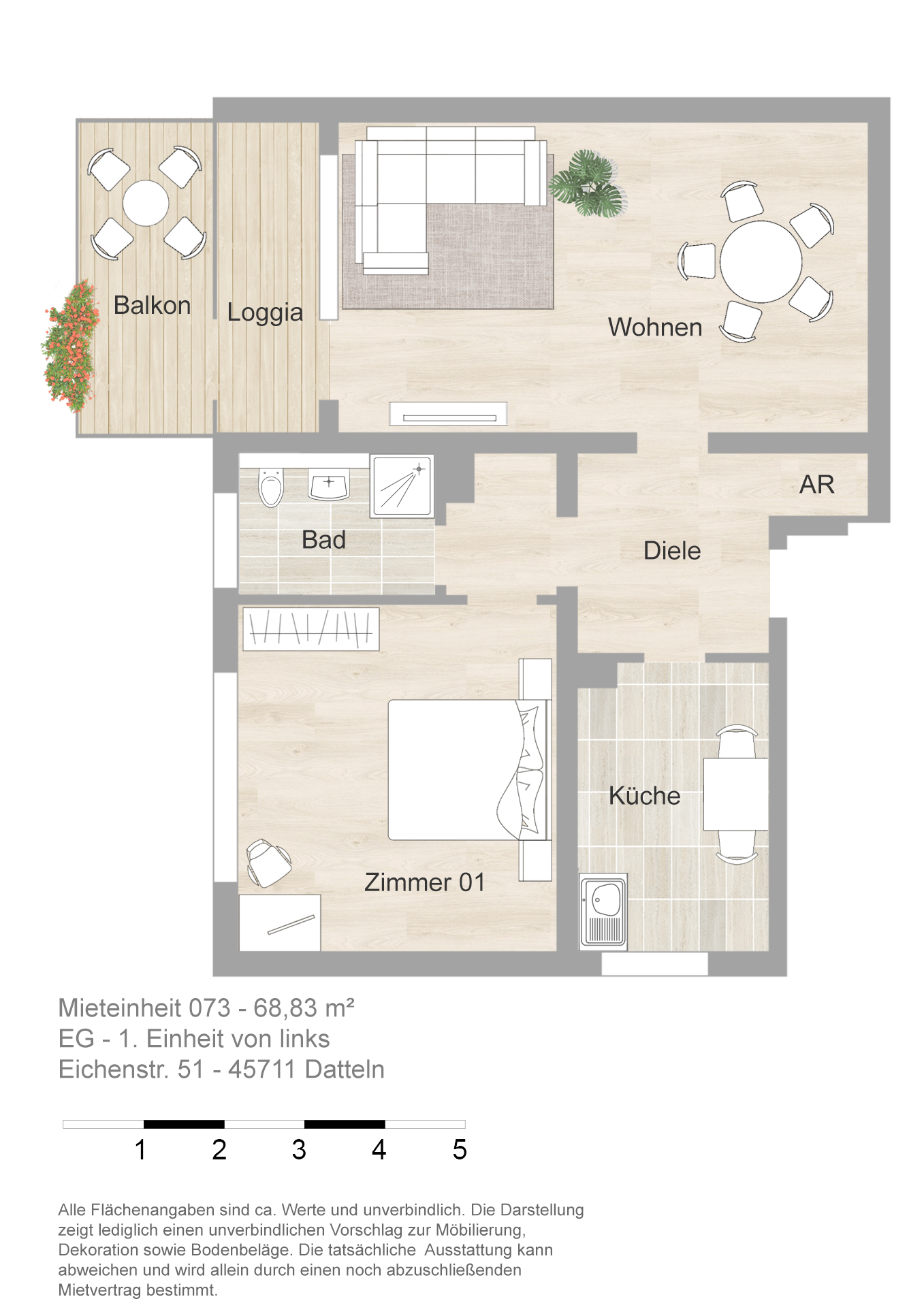 - 1 Bad (Dusche, Waschtisch, Wand-WC, Handtuchheizung)