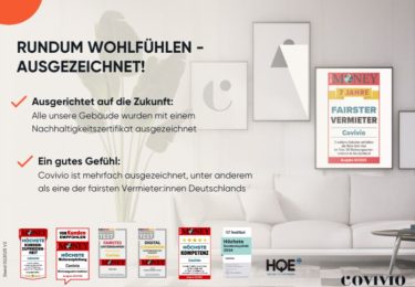 Covivio - eines der größten Immobilienunternehmen in Europa überwindet Grenzen, möchte überall den gleichen, bestmöglichen Service bieten und diesen auch in Zukunft auf die sich ändernden Bedürfnisse ihrer Kund:innen ausrichten. In Deutschland besitzt und bewirtschaftet Covivio über 41.000 Wohnimmobilien in den Städten Berlin, Leipzig, Dresden, Hamburg sowie in der Rhein-Ruhr-Region. Gut für Sie zu wissen! Covivio Mitarbeiter:innen werden von Ihnen bei Abschluss eines Mietvertrages niemals Gebühren verlangen. Wir bitten Kund:innen, Betrugsmaschen (insbesondere im Internet) oder jede Form von Compliance-Verstößen zu melden. Für Covivio ist Compliance Bestandteil der Unternehmenskultur. Nur so können wir als verlässlicher und vertrauenswürdiger Partner handeln und als ein solcher wahrgenommen werden. Weitere Informationen finden Sie hier: https://www.covivio.immo/compliance/