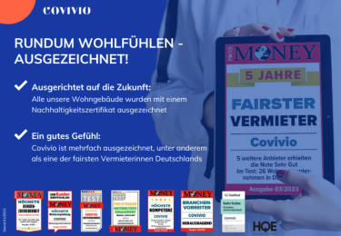 • Ein gutes Gefühl: Covivio ist mehrfach ausgezeichnet unter anderem als eine der fairsten Vermieterinnen Deutschlands