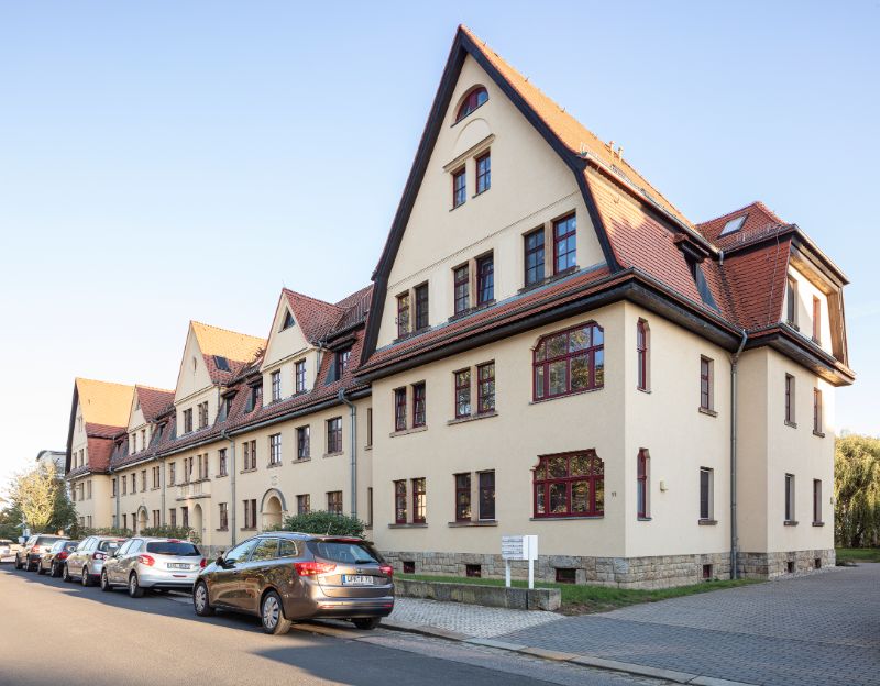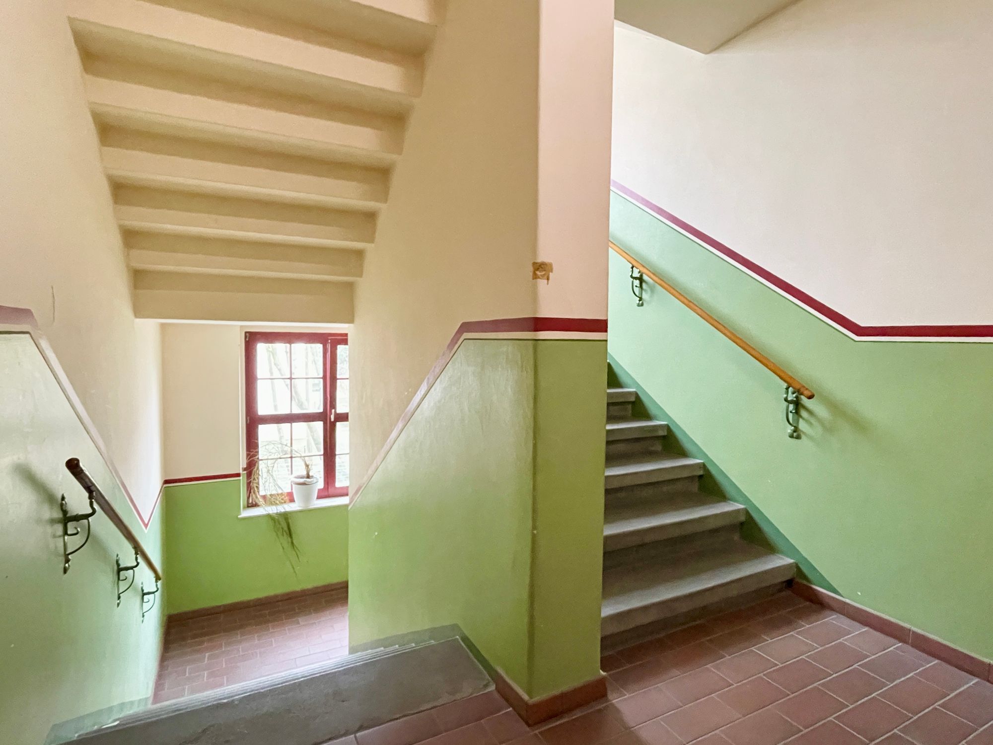 Das Mehrfamilienhaus wurde 1930 in geschlossener Bebauung errichtet und ist umfangreich saniert. Auf 4 Vollgeschossen mit Dachgeschoss befinden sich in den einzelnen Hauseingängen 7 bis 11 Wohnungen mit Größen zwischen 35 und 90 m². Der begrünte Innenhof bietet ausreichend Spielfläche für Kinder und lädt zum Entspannen ein. Die Fassadenrückseitig angebrachten Balkone sind nach Nordosten ausgerichtet. Das Objekt wird zentral durch Gas versorgt und die Warmwasserversorgung erfolgt ebenfalls zentral.
