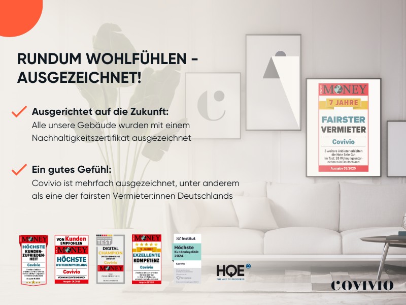 - Ein gutes Gefühl: Covivio ist mehrfach ausgezeichnet unter anderem als eine der fairsten Vermieterinnen Deutschlands