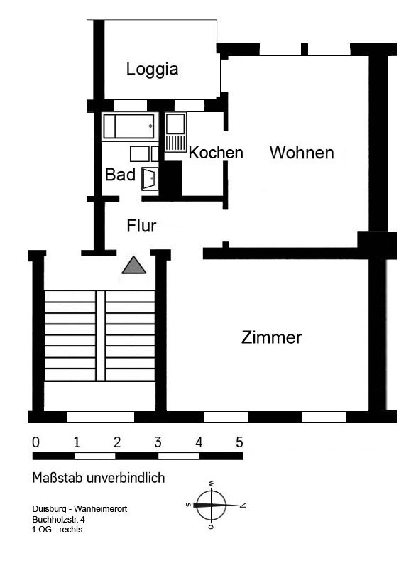 - Wohnküche mit Kochnische, Schlafzimmer, Diele, Duschbad mit Fenster, Balkon