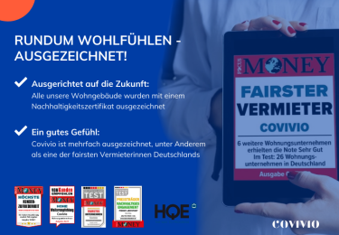- Ein gutes Gefühl: Covivio ist mehrfach ausgezeichnet, unter anderem als eine der fairsten Vermieterinnen Deutschlands