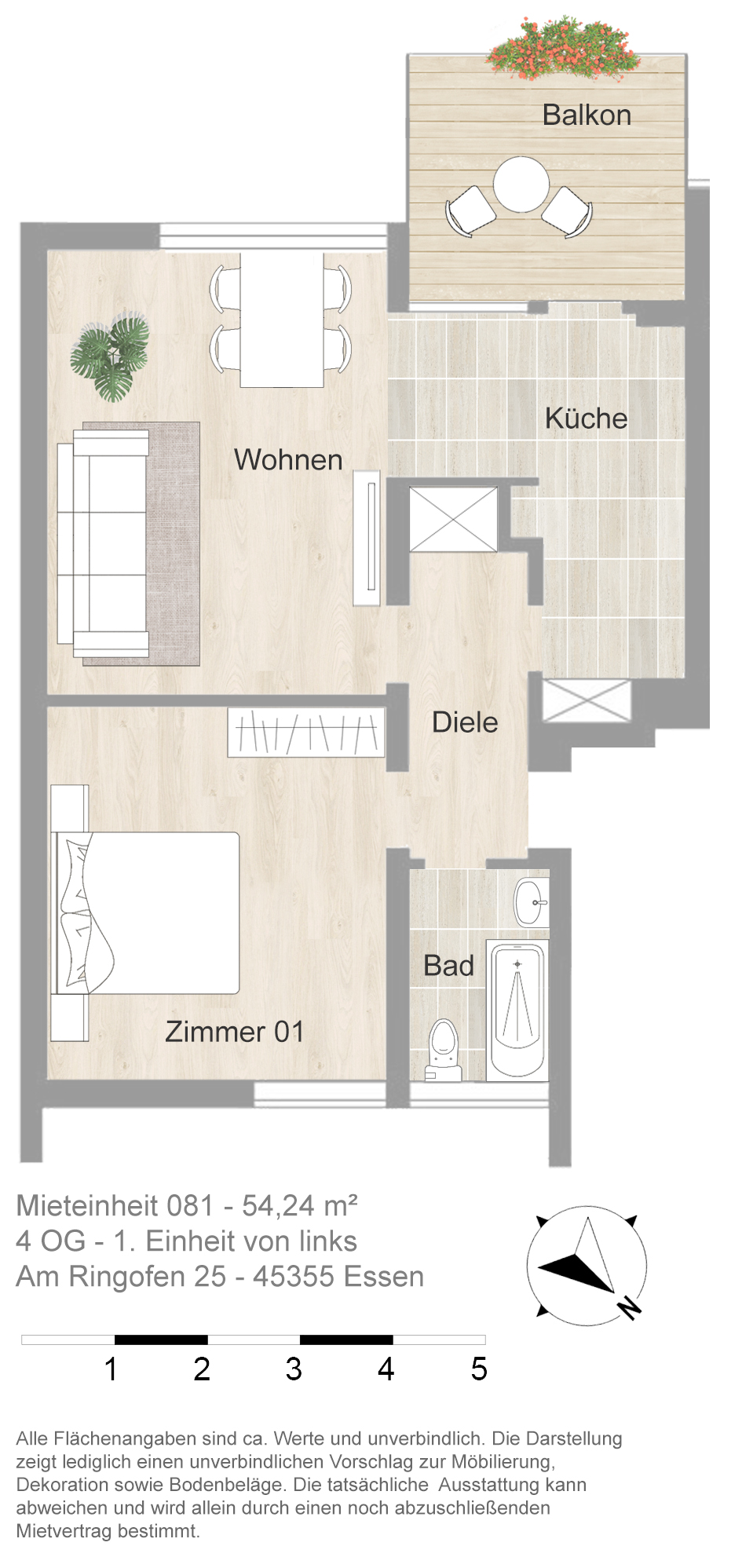 Bei den hier gezeigten Bildern handelt es sich um Fotos einer bereits modernisierten Wohnung mit identischer Raumaufteilung aus dieser Häuserzeile. Die tatsächlichen Ausstattungen können ggf. davon abweichen.