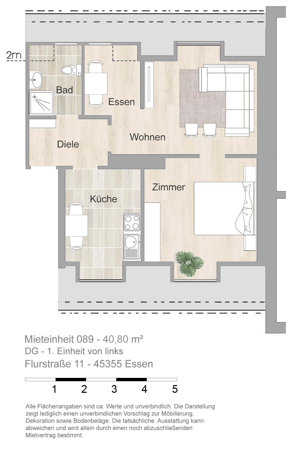 - 2 Zimmer, Küche, Diele und ein modern ausgestattetes Tageslichtbad,