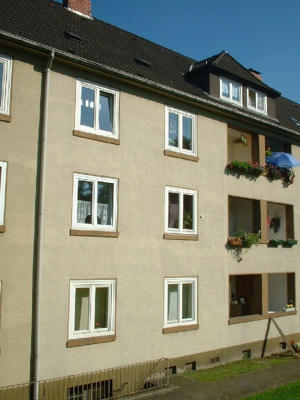 Bei den hier gezeigten Bildern handelt es sich um Fotos einer identisch aufgeteilten Wohnung aus dieser Häuserzeile. Die tatsächlichen Ausstattungen können ggf. davon abweichen.