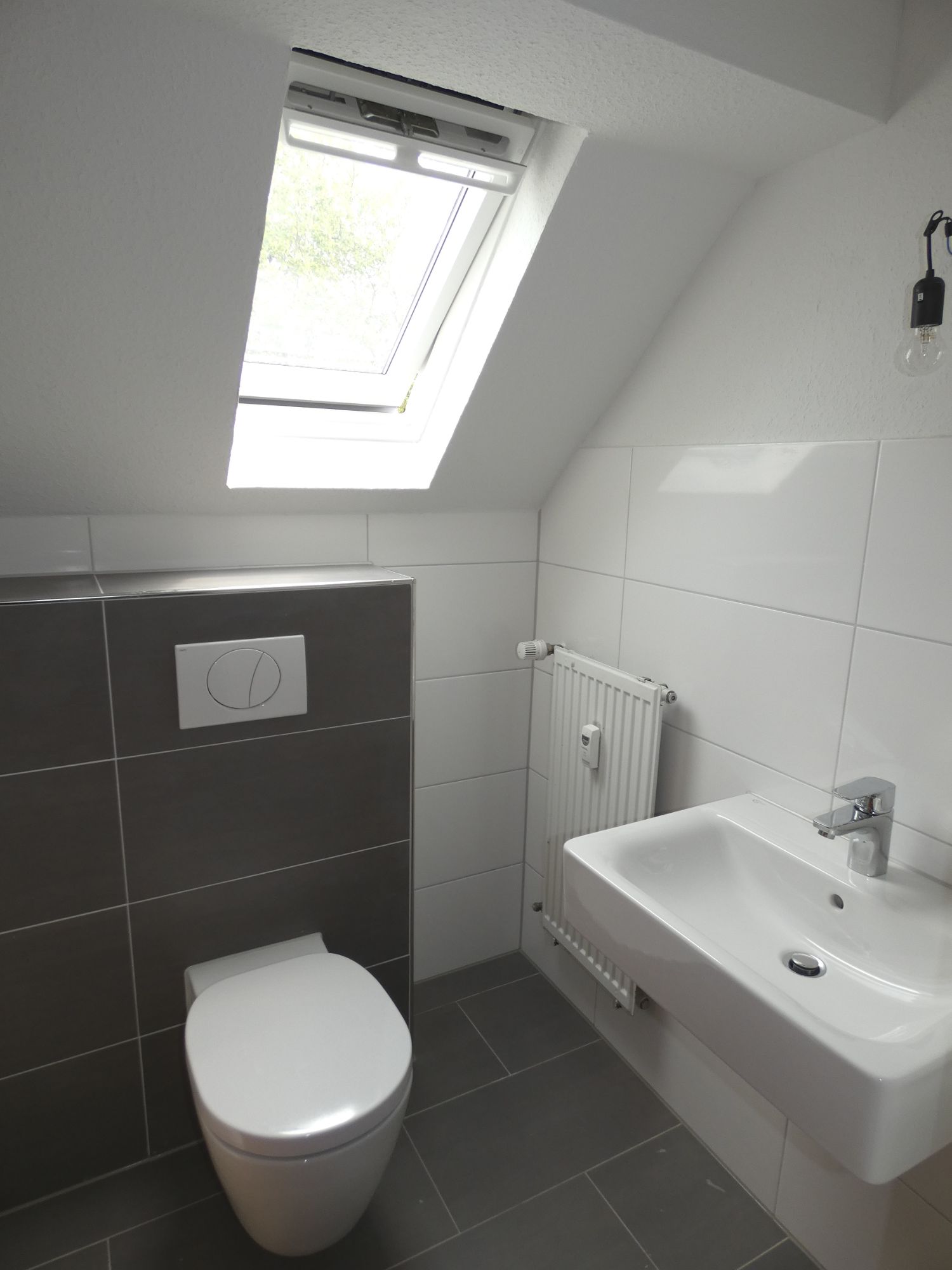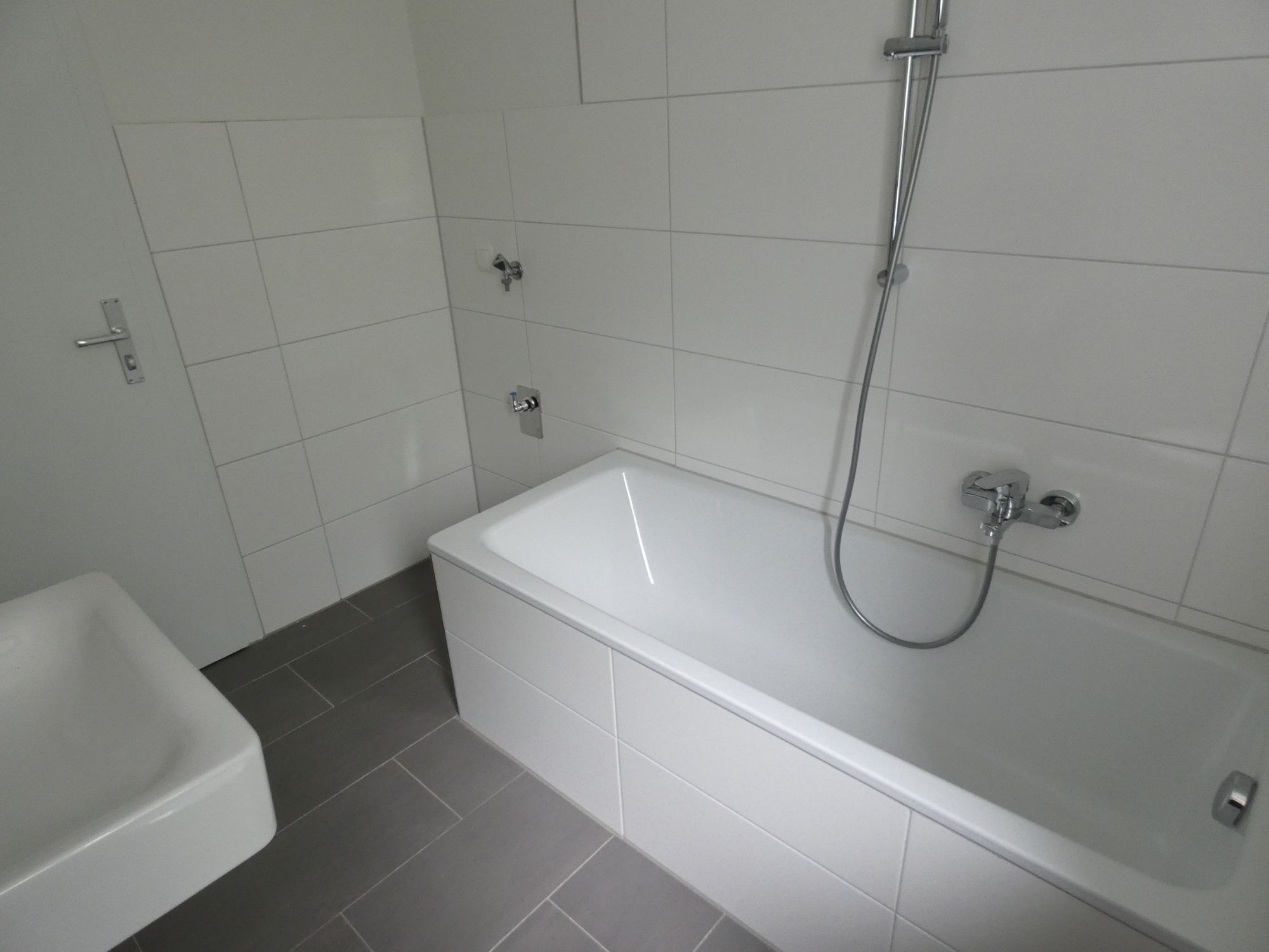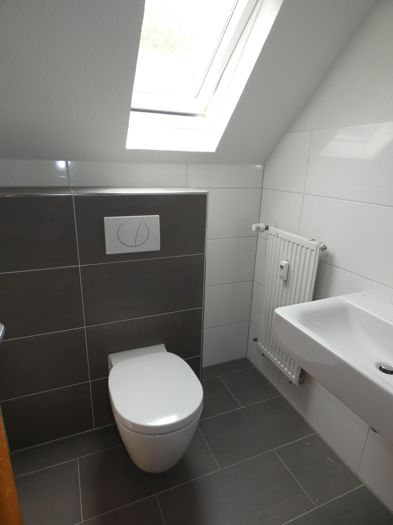 - Bodenfliesen im Bad im Format 30 x 60 cm (Loft grau)