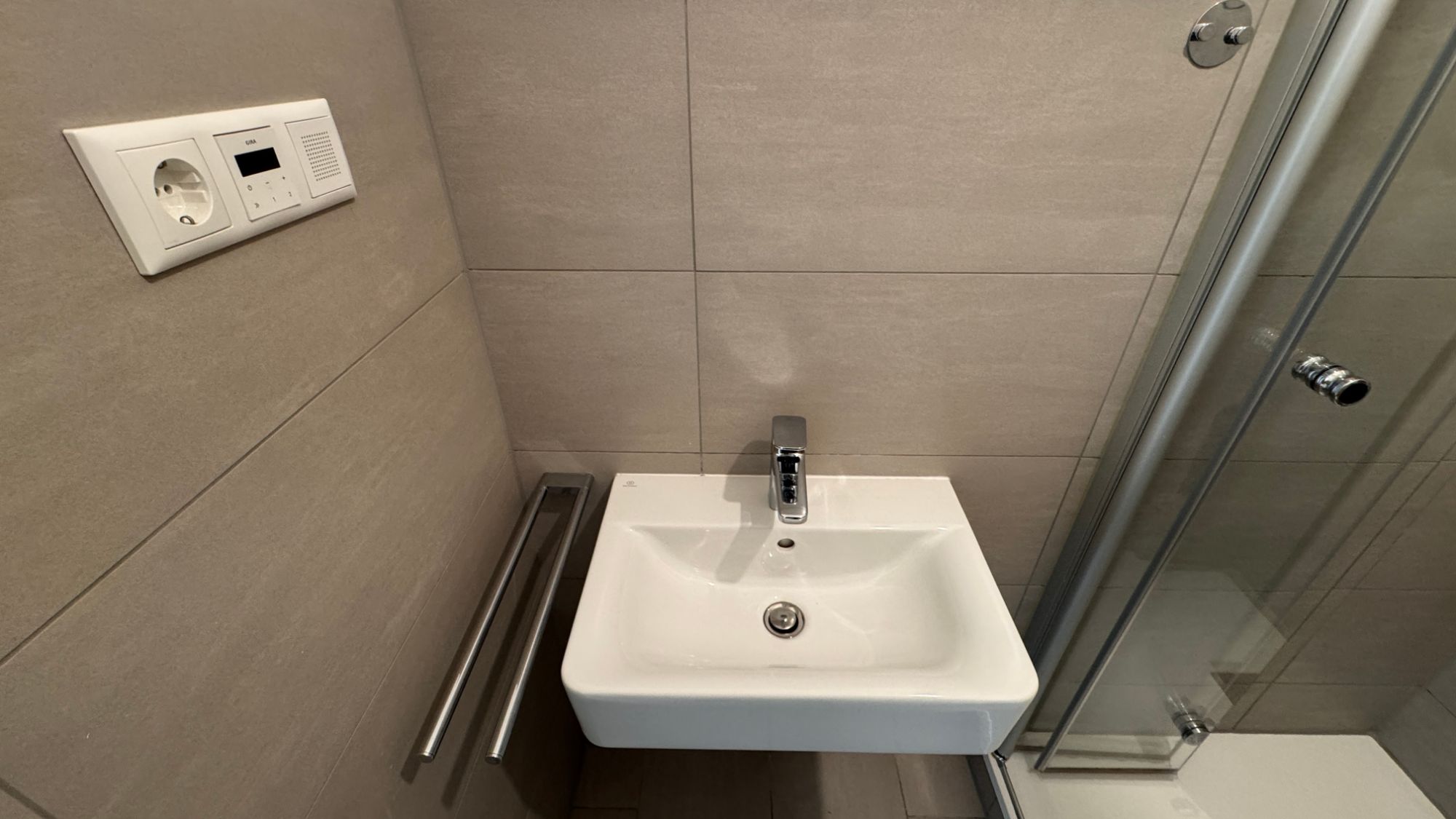 - Premium-Bad-Ausstattung: Handtuchheizkörper, Dusche mit Echtglas-