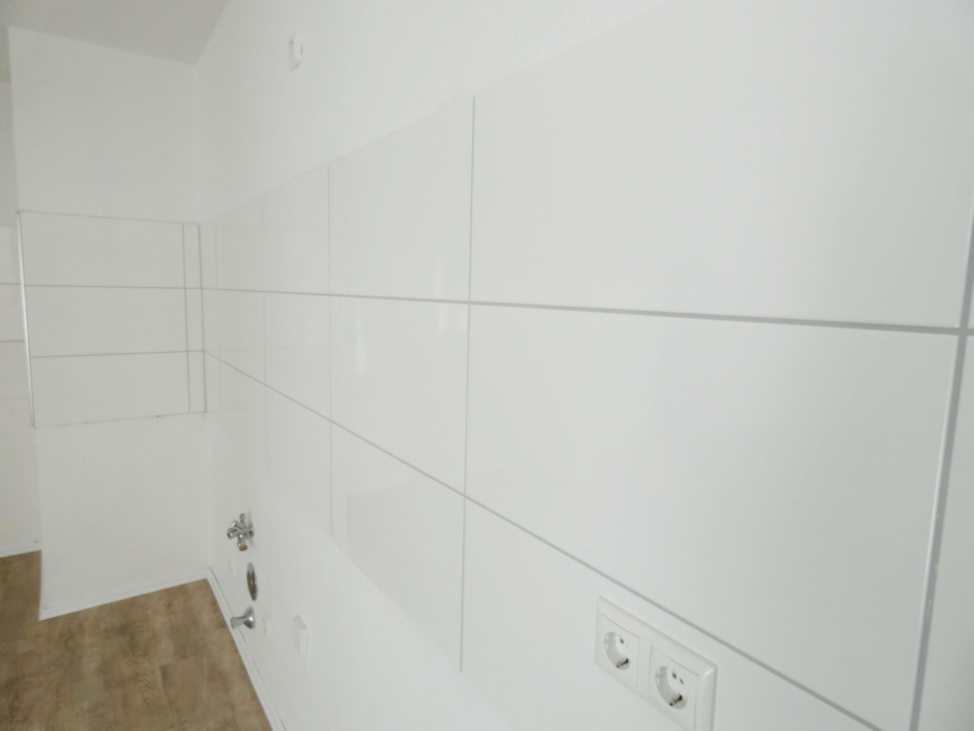 - unmöblierte Wohnküche mit neuen Fliesenspiegel