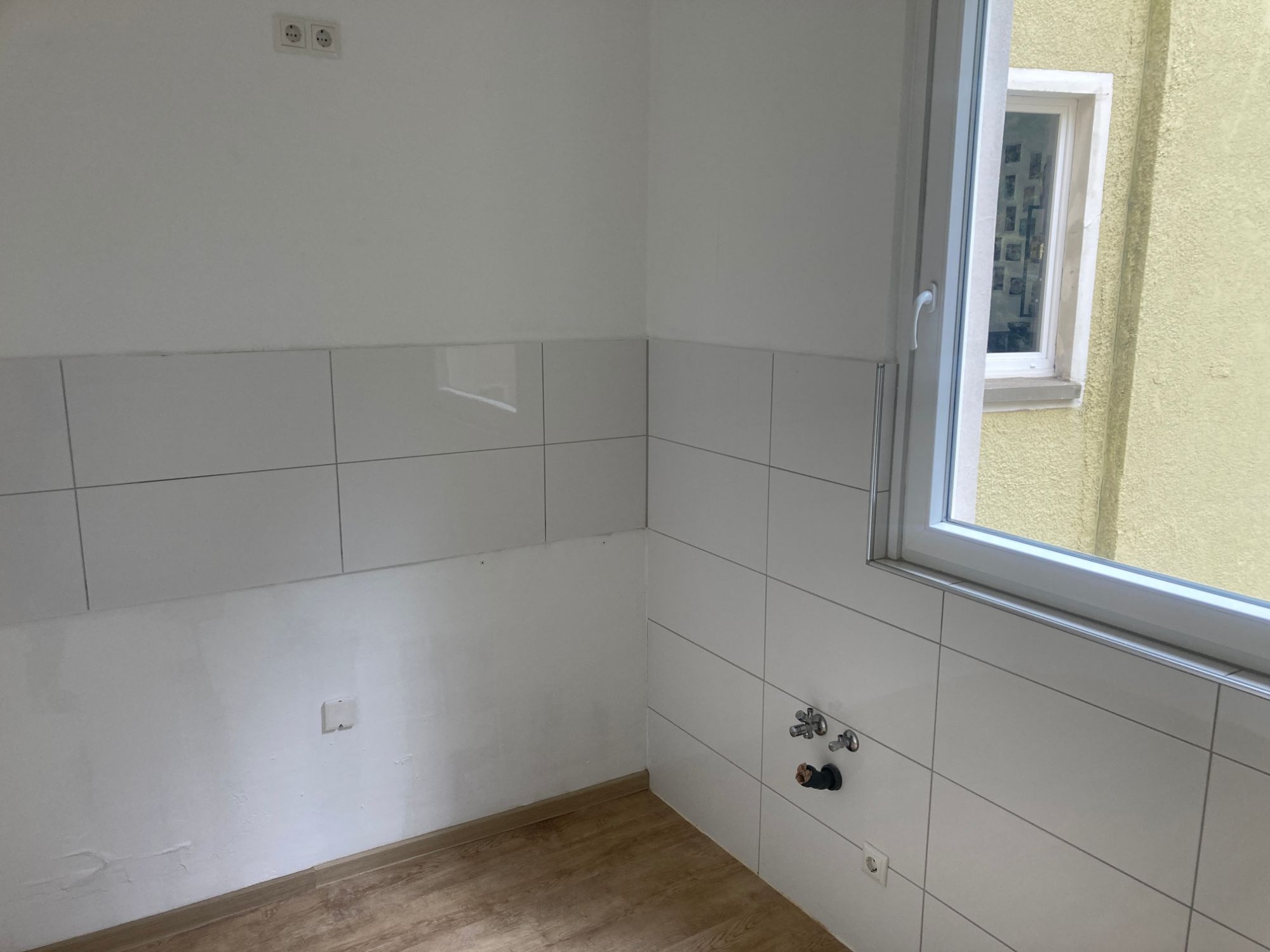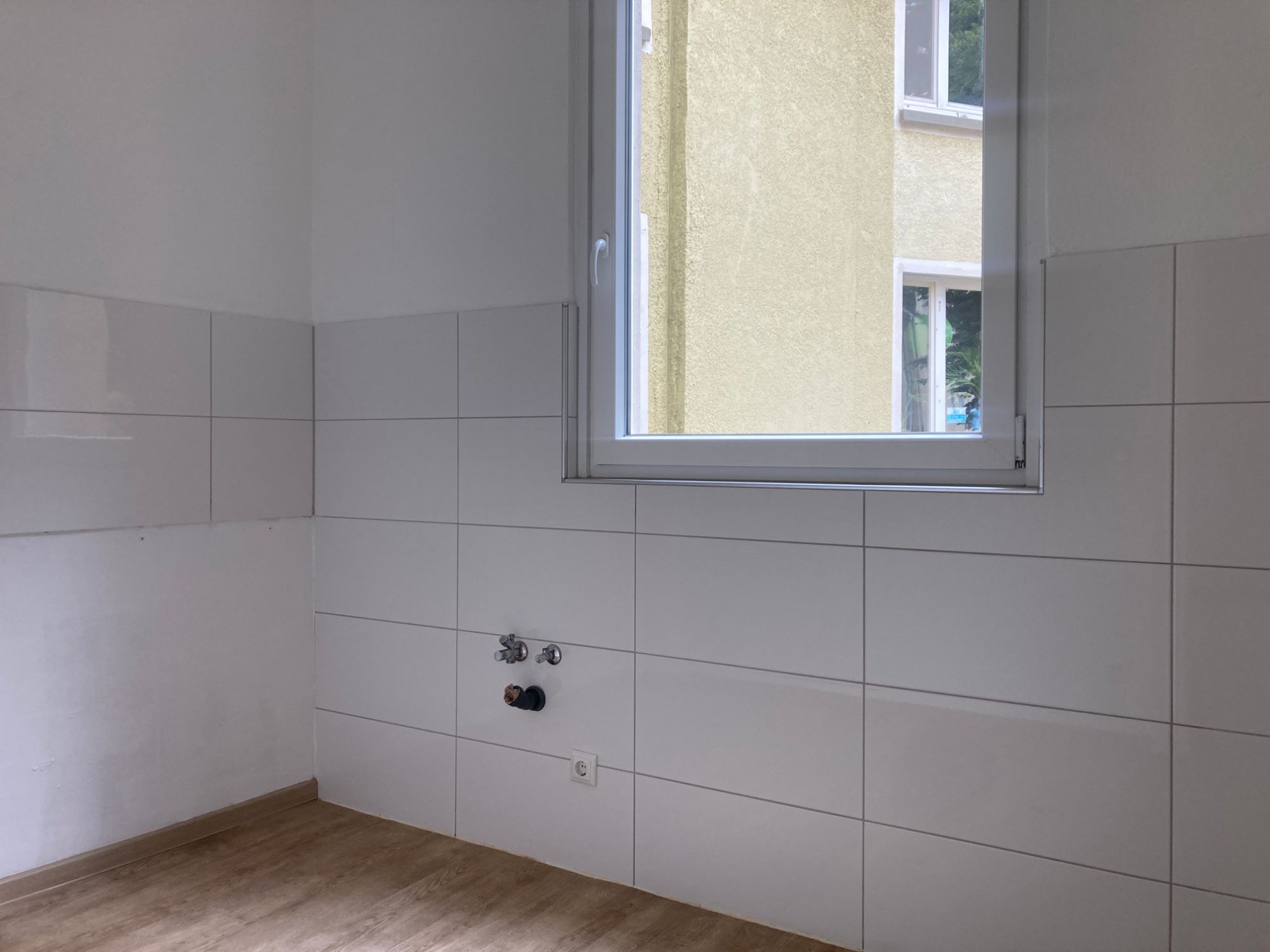 - Küche mit hellem Fliesenspiegel