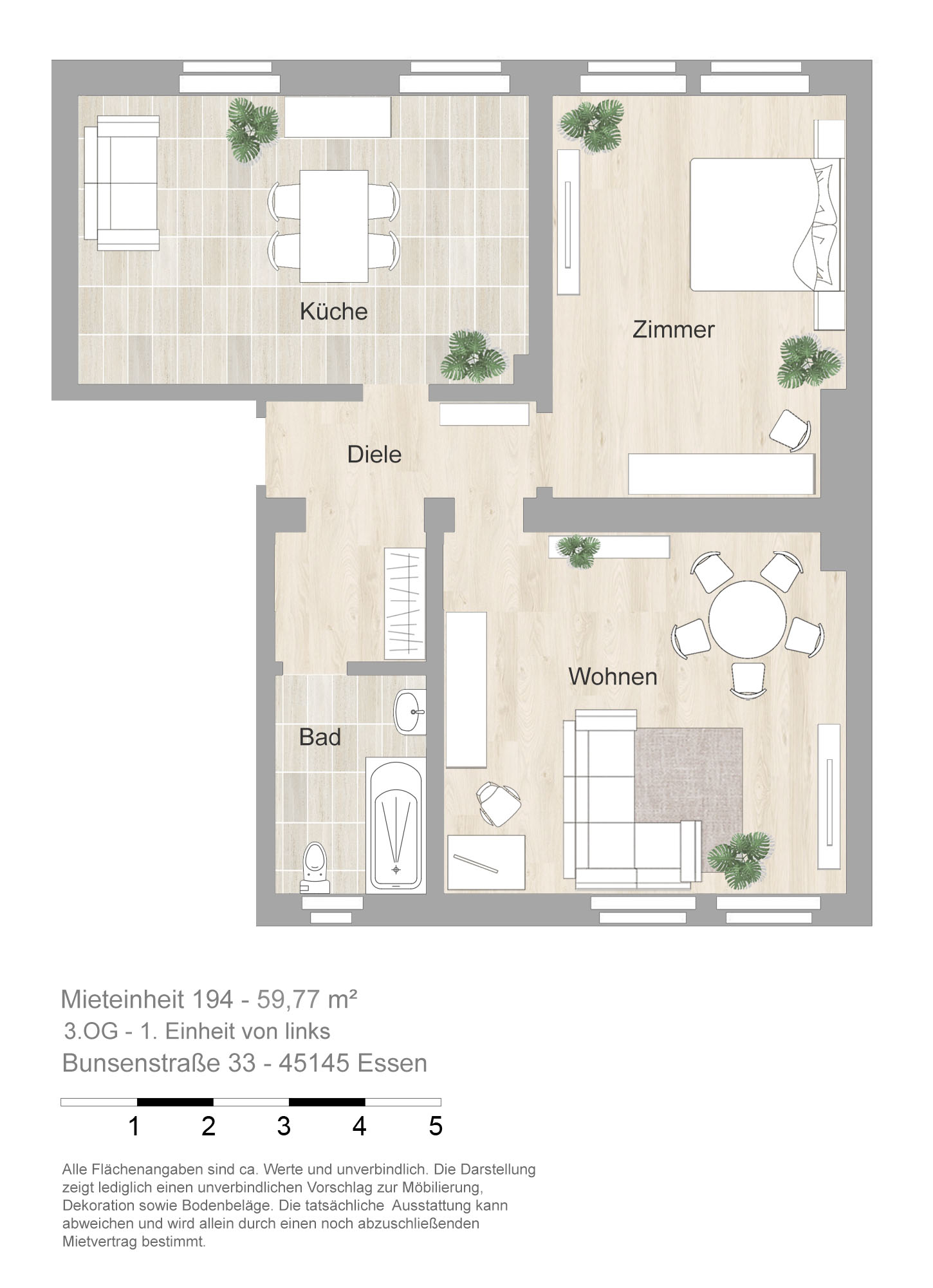Wir verwenden in diesem Inserat Beispielfotos einer vergleichbaren Wohnung aus unserem Wohnungsbestand. Damit soll der Standard widergespiegelt werden. Die Wohnungsausstattung im Original kann von den Fotos abweichen.