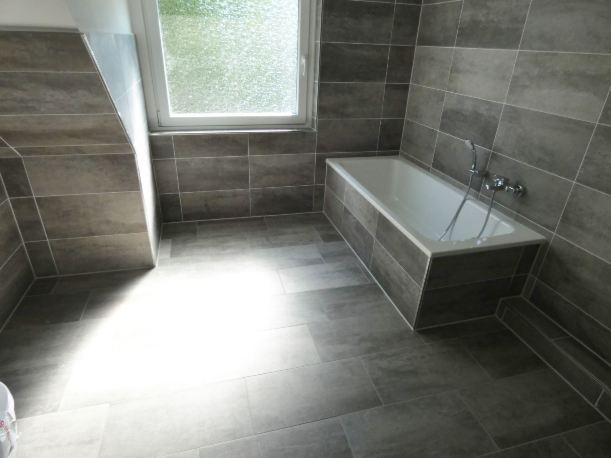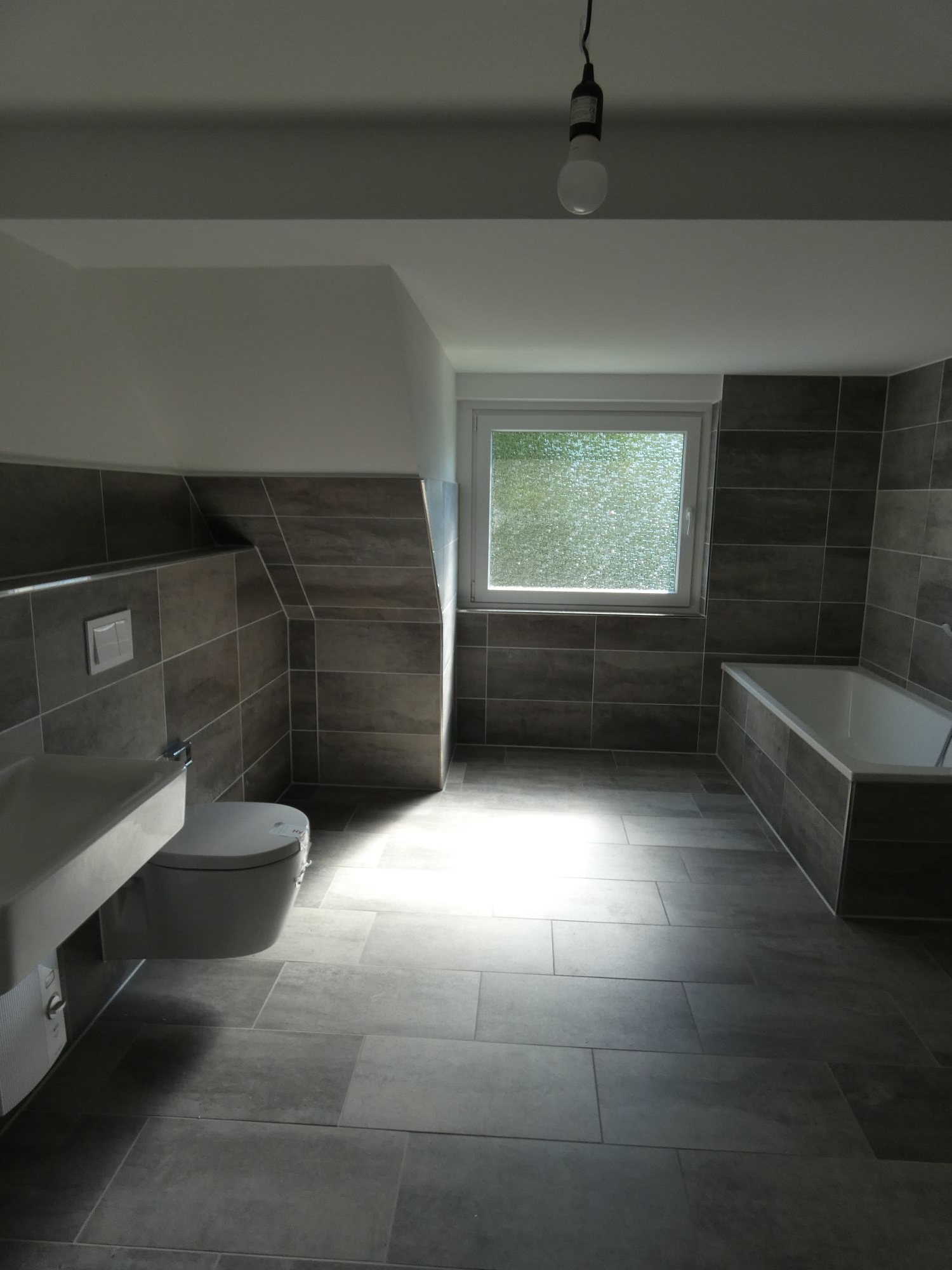 • neues Tageslicht-Duschbad in modernem hellgrau mit
