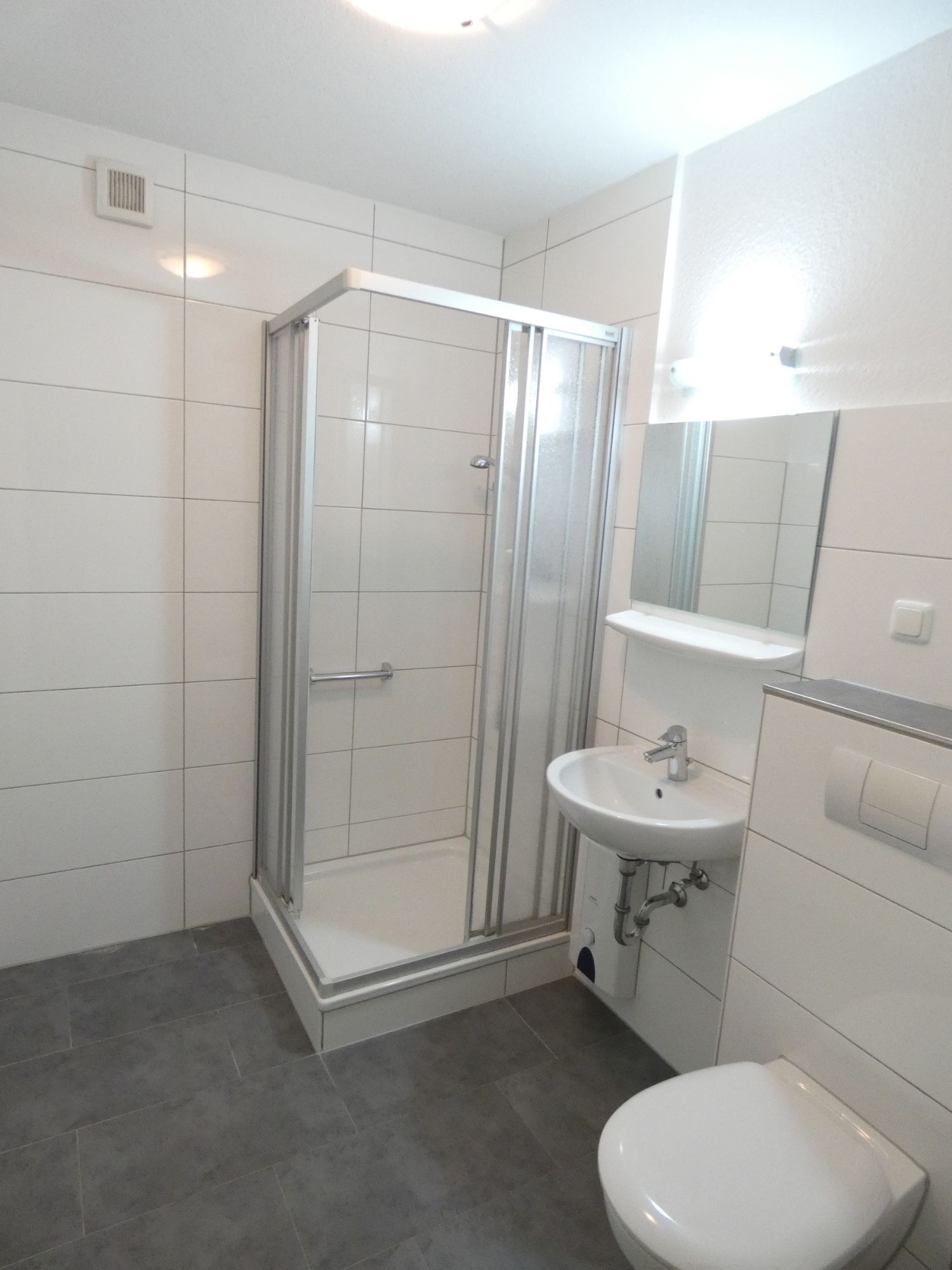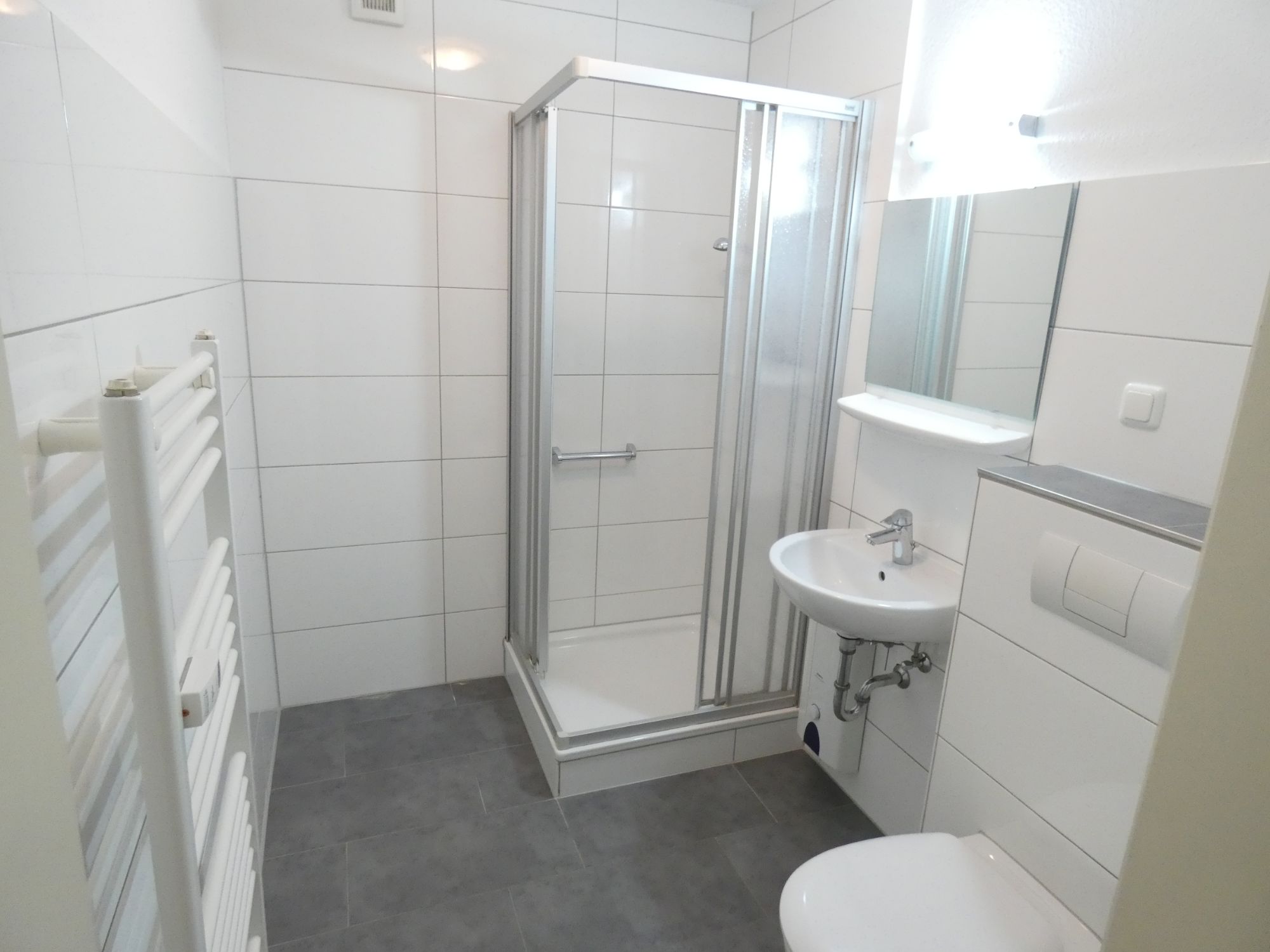 - Bad mit Dusche, Hänge-WC und Handtuch-Heizkörper
