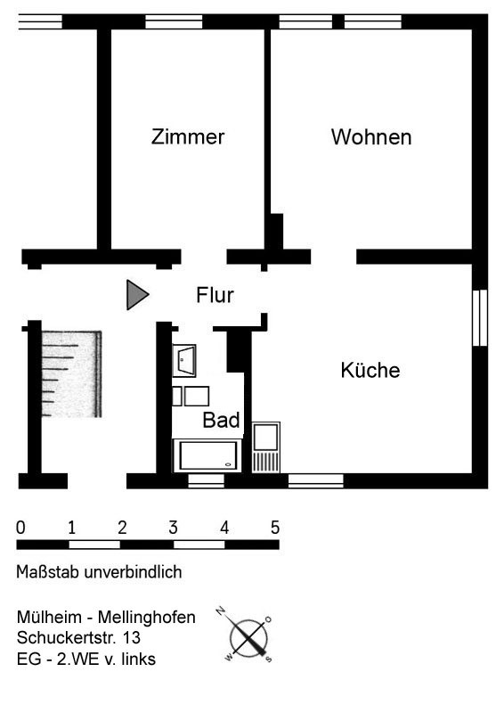 - 2 Zimmer, Küche, Diele, modernes Tageslichtbad mit Dusche
